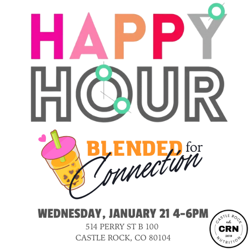 Join us for a Healthy Happy Hour at Castle Rock Nutrition on Wednesday, January 21 from 4–6 PM. This isn’t your typical happy hour—think delicious smoothies, nourishing snacks, and practical health tips to help you start the new year feeling energized and connected.